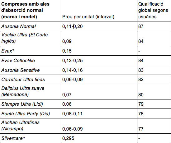 Compresas comparativa