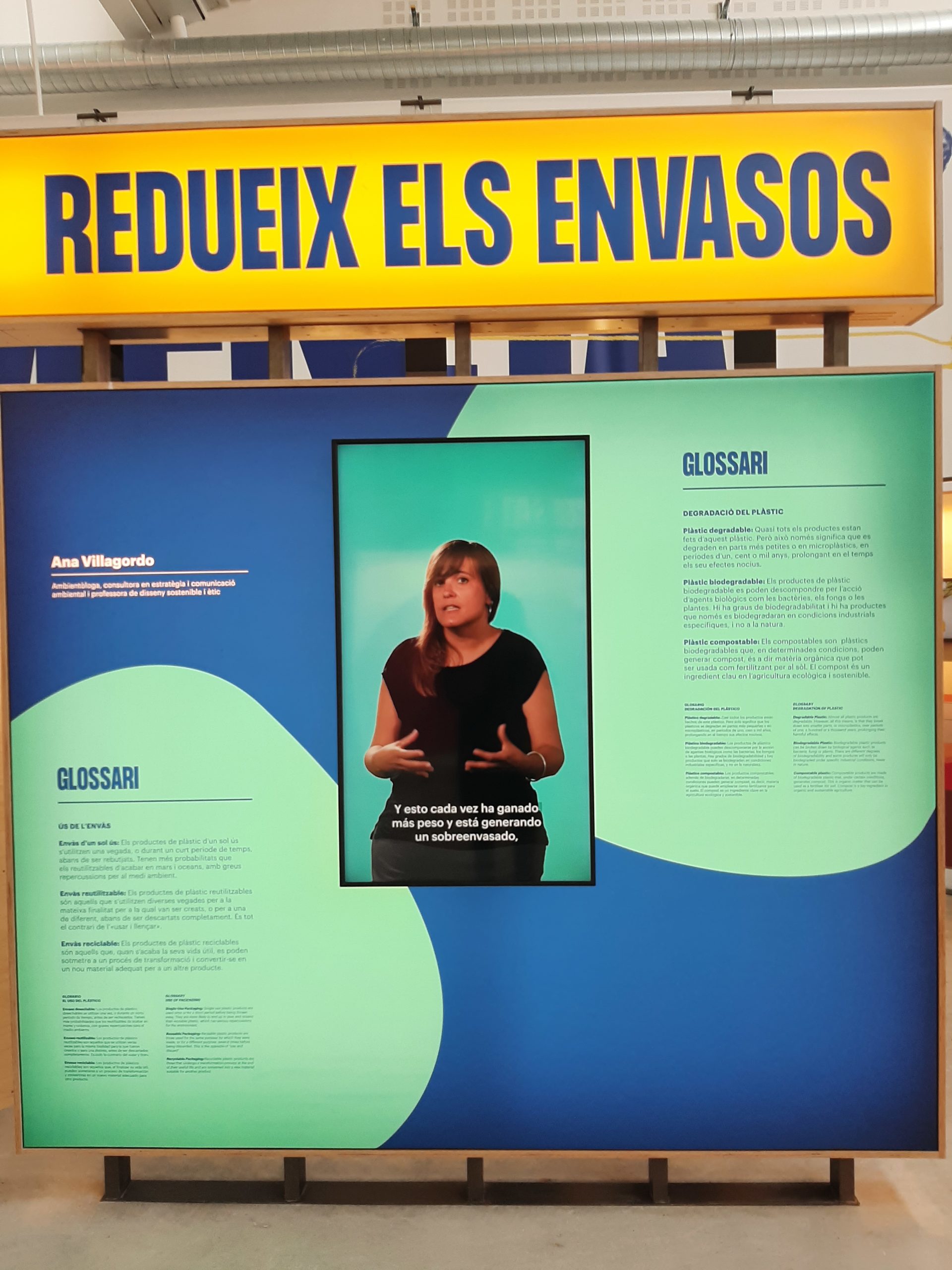 He podido participar en la elaboración de contenidos del ámbito 2, concretamente de la instalación dedicada a los envases asociados a la conservación, distribución, almacenamiento y venta de comida. A partir de mi feedback y de trabajar con el equipo de la exposición, el resultado ya se puede visitar. Cómo poder comer sin consumir tantos envases (sobre todo, plástico), como hacer la compra de comida y comprar sólo comida (sin plástico ni ningún otro material añadido)... estos y otros contenidos se pueden visitar hasta julio de 2023 . A continuación, el vídeo introductorio de la exposición, muy impactante y emocionante: ¡el rap de la alimentación!