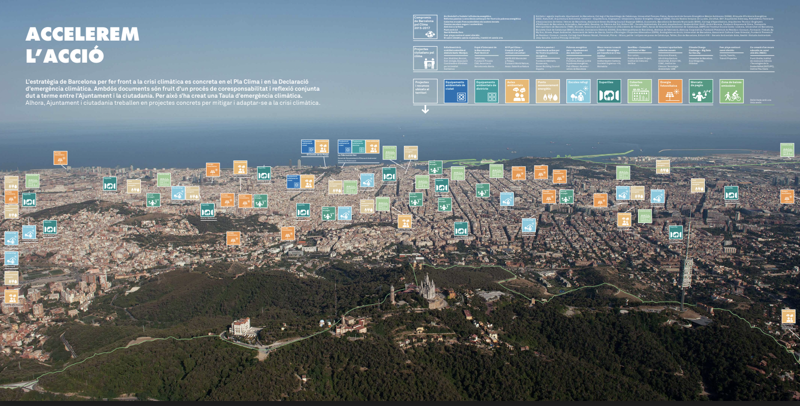 Mapa de Barcelona que muestra todos los proyectos des de los cuales se está pasando a la acción frente a la emergencia climática.